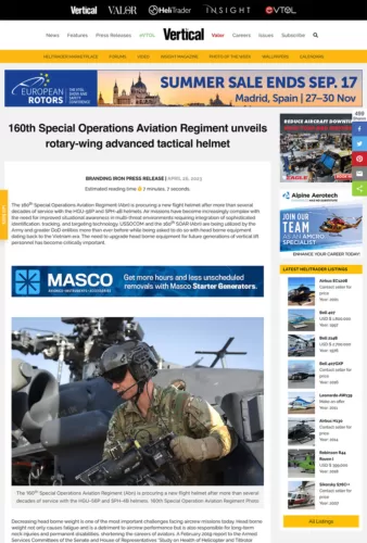 “The 160th Special Operations Aviation Regiment (Abn) is procuring a new flight helmet after more than several decades of service with the HGU-56P and SPH-4B helmets. Air missions have become increasingly complex with the need for improved situational awareness in multi-threat environments requiring integration of sophisticated identification, tracking, and targeting technology. USSOCOM and the 160th SOAR (Abn) are being utilized by the Army and greater DoD entities more than ever before while being asked to do so with head borne equipment dating back to the Vietnam era. The need to upgrade head borne equipment for future generations of vertical lift personnel has become critically important.”