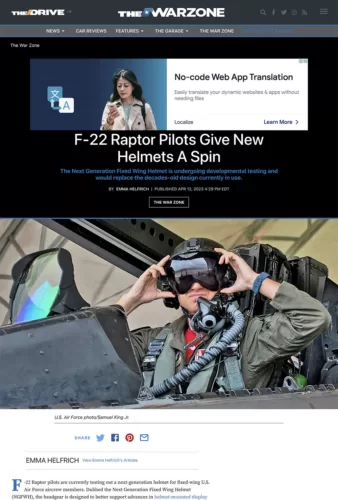 “F-22 Raptor pilots are currently testing out a next-generation helmet for fixed-wing U.S. Air Force aircrew members. Dubbed the Next Generation Fixed Wing Helmet (NGFWH), the headgear is designed to better support advances in helmet-mounted display systems while providing a more comfortable wearing experience over the HGU-55/P first introduced in the 1980s that is presently worn by pilots.