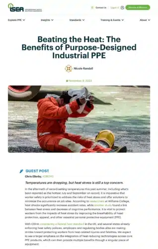“In the aftermath of record-setting temperatures this past summer, including what’s been reported as the hottest July and September on record, it is imperative that worker safety is prioritized to address the risks of heat stress and offer solutions to minimize the occurrence on job sites. According to researchers at Williams College, heat shocks significantly increase accident rates, while another study found a link between heat stress and decrease of cognitive performance. It is vital to protect workers from the impacts of heat stress by improving the breathability of head protection, apparel, and other essential personal protective equipment (PPE).”